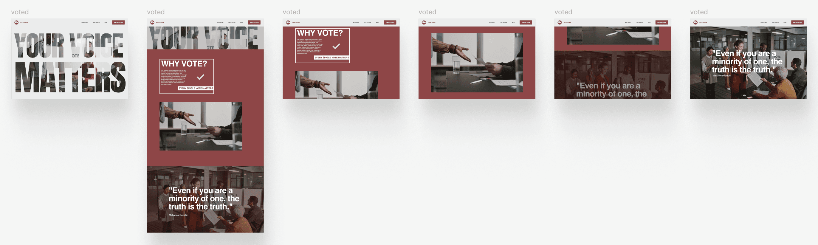 This short project aims to practice storytelling in digital design and plan website animations while presenting a mini social campaign on the importance of voting. It’s designed to be concise, eye-friendly, and engaging, conveying a powerful message about the strength of the individual’s voice. The goal is to create an impactful experience that encourages participation and highlights the significance of each vote.